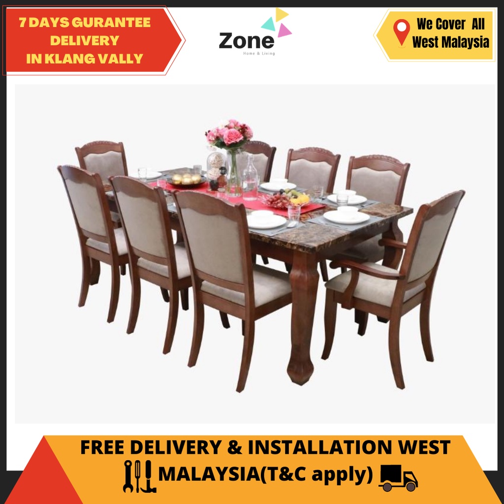 Zone 100 Marble Dining Set Marble Table 1 8 1 Meja 8 Kerusi Set Meja Makan 8 Kerusi Brawn White Shopee Malaysia
